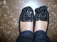 Y ahora pasamos a las rebajas… empecé por Zara y me compré una falda dorada que había visto ya con mi madre y que me pareció preciosísima para combinar con una camiseta finita de manga larga básica en negro, unos mocasines negros, unas bailarinas grises con florecillas y una blusa de seda blanca con lazo opcional al cuello.