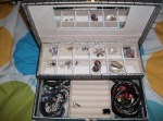 Luego pasé a recoger los que había encargado mi querida tía Pepa… y me encontré con todo esto: un anillo de acero, una pulsera de cuero y perlas, un joyero grande en plateado, un peluche de hello kitty y un neceser también de kitty : )