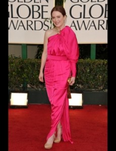 Heidi Klum me defraudó. No es que fuera mal, pero yo no soy partidaria de esa mezcla de colores a rayas para la alfombra roja a modo pareo playero, por muy Marc Jacobs que lo firme. Me pregunto también en qué estaría pensando Julian Moore cuando se enfundó el Lanvin fucsia con una de las formas más curiosas de la noche.
