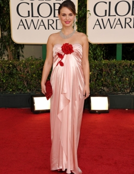 Y estuvo muy original también el escote asimétrico del Versace rojo terminado con flecos que llevaba January Jones (actriz de Mad Men) con los labios pintados del mismo tono del vestido. Me parece bonito pero yo no me lo pondría. Había mucha expectación por ver cómo lucía embarazo Natalie Portman y a mí no me entusiasmó su Victor&Rolf. La forma me gusta pero no me atrae ni los brillos del color rosa ni la combinación con la gargantilla que lleva (yo habría dejado el cuello sin nada).