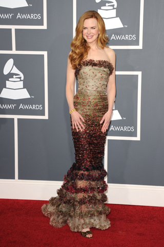de los grammy, de acuerdo contigo.. garrulez y mal gusto por todas partes. Parece un concurso para ver quién da más la nota. Nada que decir del pésimo gusto de Rihanna, que cada vez se supera más.. parece un pelocho. Nicole Kidman tampoco me gusta nada..vale que no es una jovenzuela, pero no sé porq se empeña en vestir como una anciana. Pero bueno, sí, visto lo visto, es el mal menor.