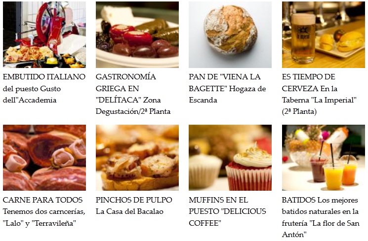 Pero también tiene vinotecas, zumerías, pastelerías y sitios donde tapear al gusto. Además, en la planta superior tiene un restaurante-terraza con carta completa de «cocina de mercado» y con la novedosa opción de que tú llevas los productos que has comprado y te los cocinan como te apetezca.