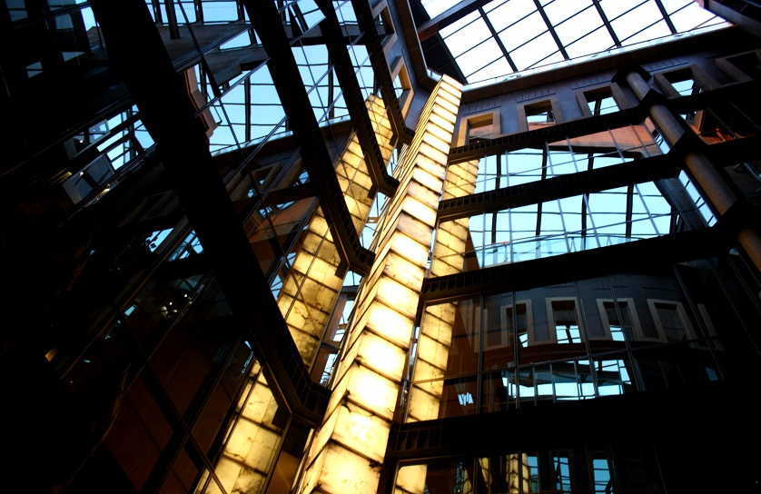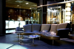 El restaurante está dentro de un hotelazo de 5*GL llamado Urban Hotel, situado en la Carrera de San Jerónimo (un poco más arriba que el Congreso de los Diputados, en la acera de enfrente). El hotel es de esos modernos que a mí tanto me gusta cotillear, aunque dude que alguna vez -al menos de momento- pueda permitirme alojarme en ellos. Decoración trabajadísima, con materiales evidentemente carísimos (mirad sino, la enorme columna de onix) y con muebles de diseño reconocibles.