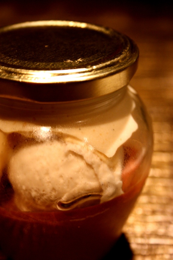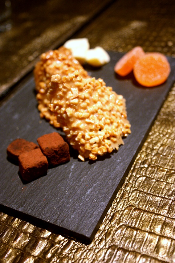 Postre: Espuma de caramelo, helado de vainilla y mousse de chocolate Guanaja