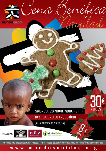 Se trata de una cena benéfica organizada por la ONG Mundos Unidos (qué canción más bonita la de su web, por cierto) que se celebrará el sábado 26 de noviembre en la Ciudad de la Justicia de Valencia y tiene un precio de 30 euros para los adultos y de 8 euros para los niños.