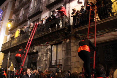Y el día 5 es el gran día. Los Reyes Magos -el negro en medio, que somos diferentes hasta en eso- llegan a Alcoi en camello -como toca- rodeados de un enorme séquito que les ayuda con el reparto de regalos casa por casa. Y es que en Alcoi los niños son los primeros en tener los regalos, ya que los pajes reales (y este año seré yo una de las afortunadas les acompañe) suben los regalos a las casas del recorrido conforme va pasando la cabalgata, gracias a unas larguísimas escaleras rojas. Ver las caras de los niños en el momento en que los reciben no tiene precio. Y nadie tiene que esperar a la mañana siguiente. Porque aunque no vivas en el centro, seguro que cuando vuelvas de ver la cabalgata ya han pasado por tu casa a dejarte tus regalos (o carbón, que siempre hay alguien que se porta mal). Dentro de la cabalgata, el momento más emocionante es cuando Sus Majestades pasan por la plaza principal en la que está el árbol y el Belén y bajan de sus camellos para adorar al recién nacido, con música y fuegos artificiales acompañándoles. Para verlo bien, la gente espera paciente para guardar un buen sitio hasta más de tres horas.