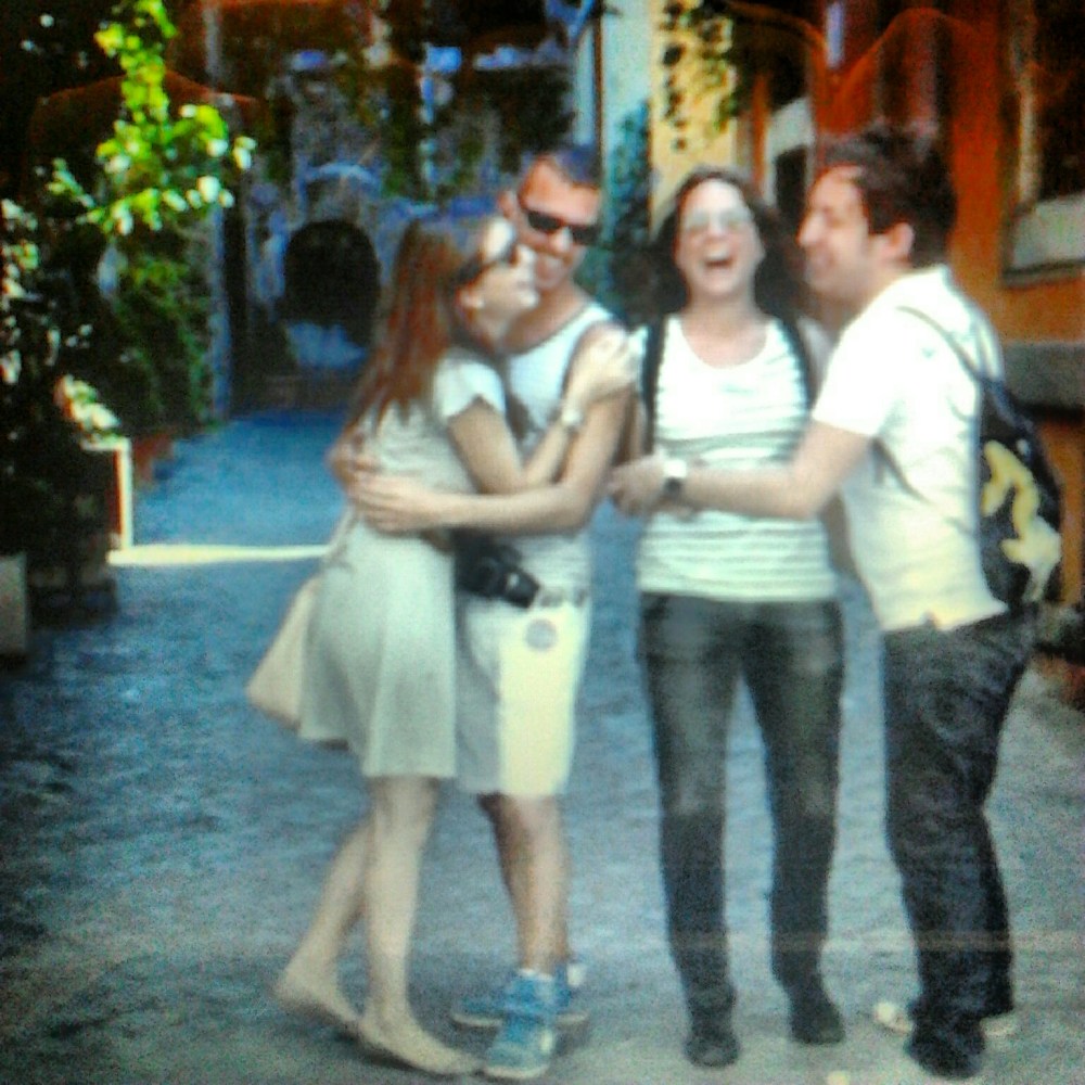 Ha habido muuuucho turisteo con muuuchos rinconcitos y muuuuuchas fotos. Ha habido muuuucha comida (pasta, pizza, helado y vuelta a empezar). Han habido muuuuchas risas. Y ha habido muuuy buen rollo general :). ¡Y muuchos guiños a Audrey Hepburn! Porque no sé si os lo imaginaréis pero yo iba por las calles llenas de adoquines saltando y recordando escenas de Vacaciones en Roma, feliz cual perdiz :).