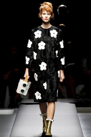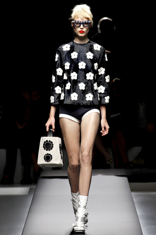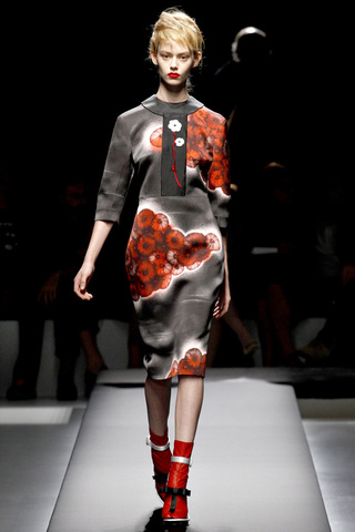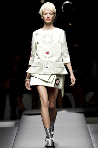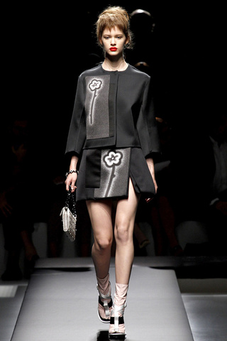 Antes decíamos «Yo por un bolso de Prada…» [MA-TO] pero es que desde un tiempo considerable a esta parte podemos sustituir la palabra «bolso» por casi cualquier cosa. Para deciros que yo el día que me dieron un pendrive de Prada me puse a aplaudir de la emoción… Pero vayamos al lío: EL DESFILE. El más esperado. Y no defrauda. Miuccia SIEMPRE sorprende. Gustará más o menos (a mí este desfile casi que menos que más) pero nadie puede negar que Miuccia es absolutamente ÚNICA.