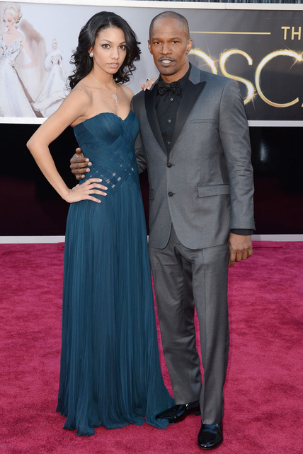 No me fije anoche en Corinne Bishop la hija de Jamie Fox, es realmente guapa y el vestido le queda genial, esos colores suelen quedar muy bien en ese todo de piel.